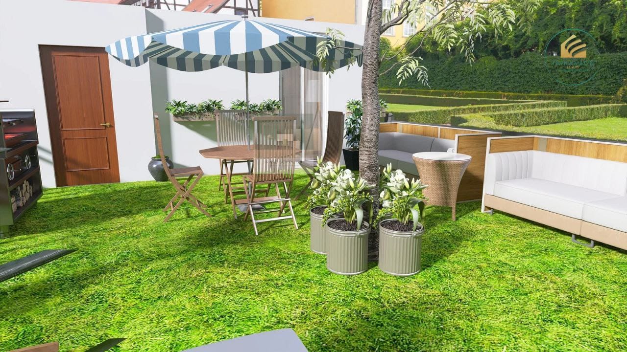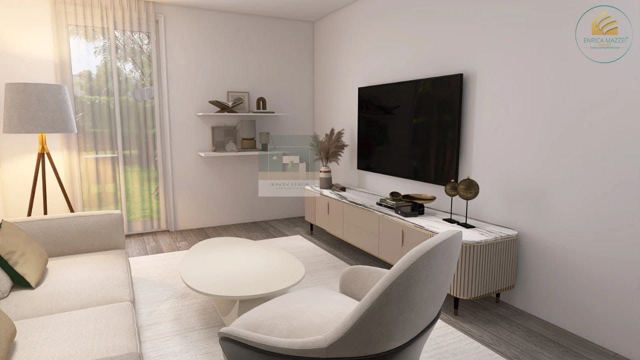 Gli interni – salotto, camera da letto e giardino – sono stati ripensati con eleganza, funzionalità e cura nei dettagli.